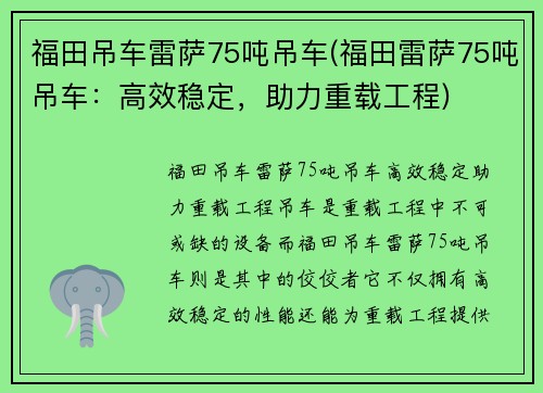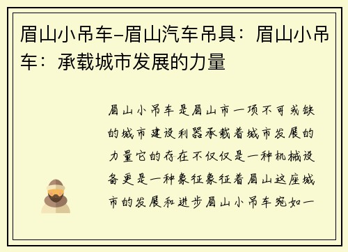 车吊车吊车随车吊_车吊车:高效作业利器是一种高效作业利器,能够提高工作效率,节省人力成本,减少工作风险。本文将从六个方面对其进行详细阐述。立博官网 1. 多功能性 车吊车吊车随车吊_车吊车具有多功能性,可以完成吊装、搬运、起重等多种作业任务。其灵活性和多功能性使其成为工地上的得力助手。 2. 高效作业 车吊车吊车随车吊_车吊车具有快速起重、准...