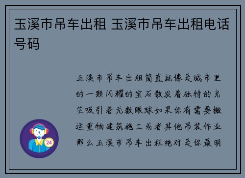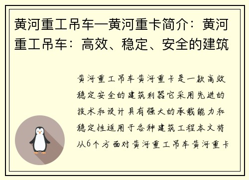 市场需求 随着城市建设和工程施工的不断推进,吊车作为一种重要的施工设备,市场需求量也在不断增加。衡水作为一个经济发达的城市,对于吊车的需求量也在不断增加。特别是二手吊车,由于价格相对较低,因此备受市场青睐。在这种情况下,衡水二手吊车成为了许多工程公司和建筑公司的首选。立博体育赞助 品牌选择 在市场上,二手吊车的品牌...