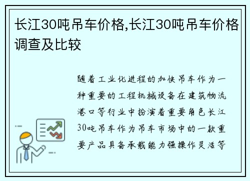 本文主要介绍铁岭吊车厂家直销的地址和品质保障,从产品质量、服务质量、售后服务、价格优势、技术实力和创新能力六个方面详细阐述,最后总结归纳了铁岭吊车厂家直销的优势和特点。 一、产品质量——高品质吊车的生产基地 铁岭吊车厂家直销是一个以生产高品质吊车为主的企业,产品质量是企业的核心竞争力。铁岭吊车厂家直销拥有一支技术精湛的生产团队,采用国际先进的生产工艺和设备,从原材料的选择、生产工艺的控制、产品的检...